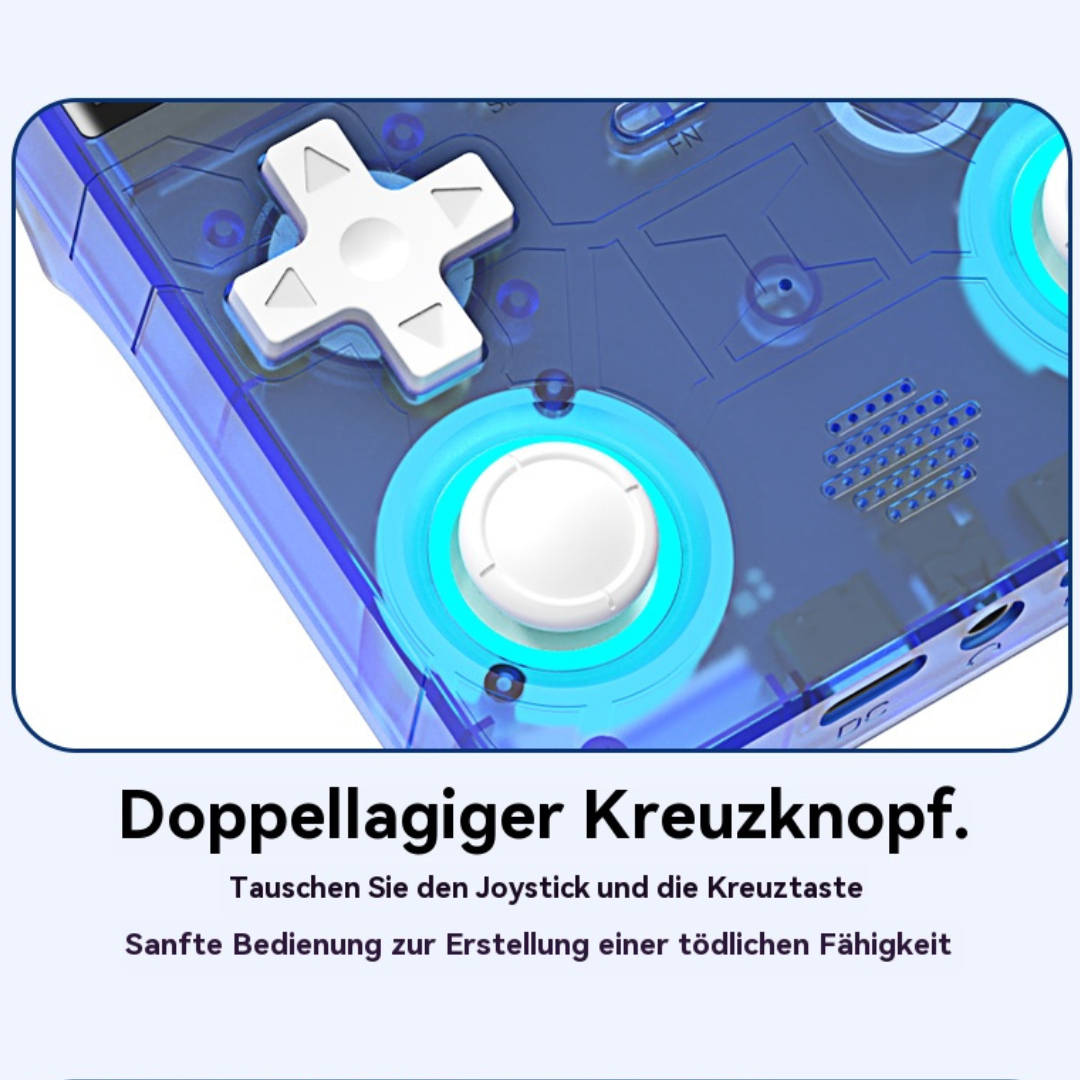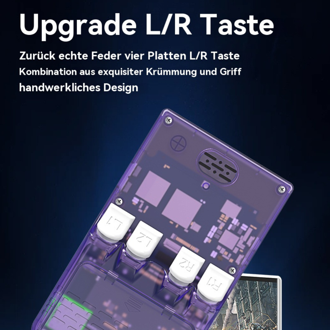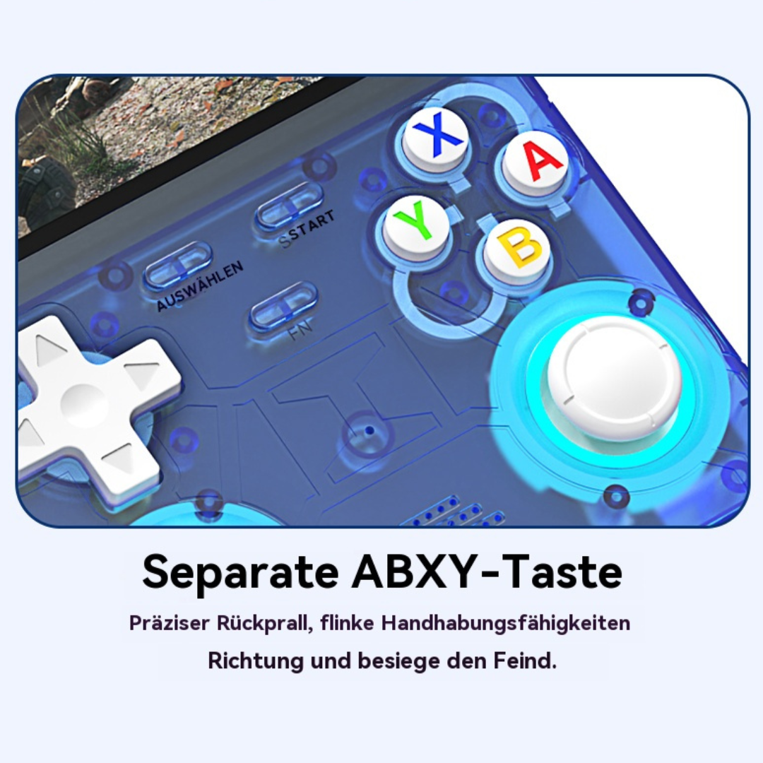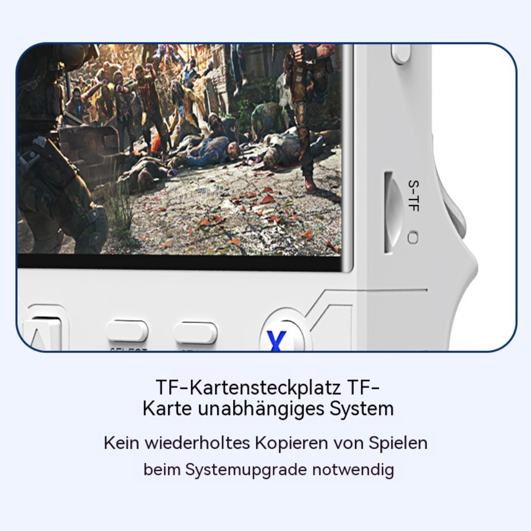 • Design: Modernes Retro Handheld Design mit ergonomischer Tastenanordnung